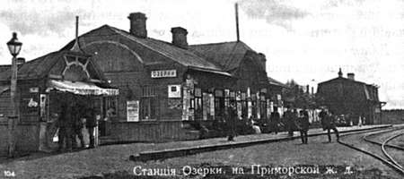 Озерковский вокзал Приморской железной дороги. Открытка начала XX в. Здание справа сохранилось до нынешнего времени