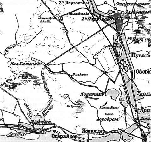 Коломяги на карте окрестностей Петрограда 1914 г.