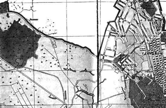 Неосуществленный план города-спутника на карте Петрограда 1916 г.
