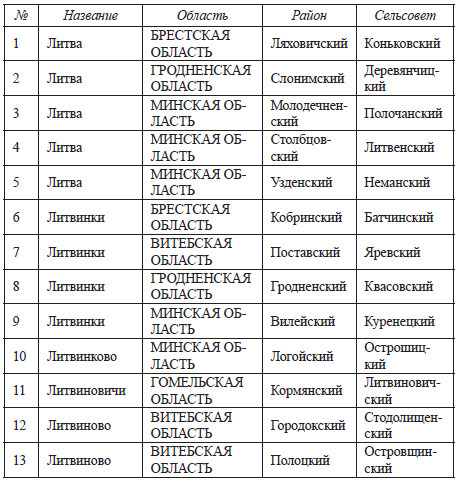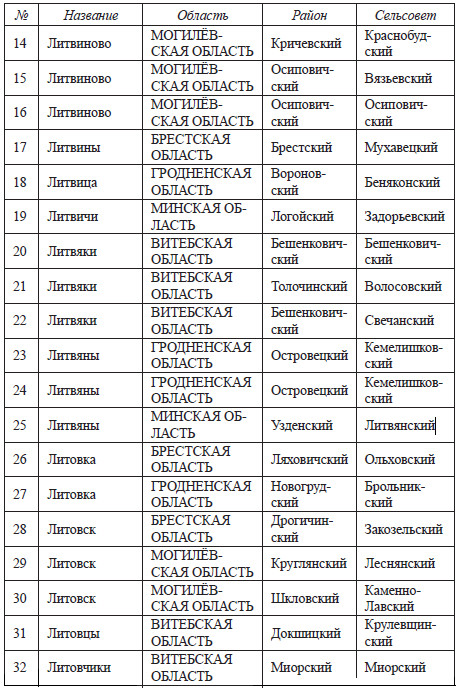 Вот на территории Беларуси я насчитал 34 населённых пункта с «литовскими» названиями: