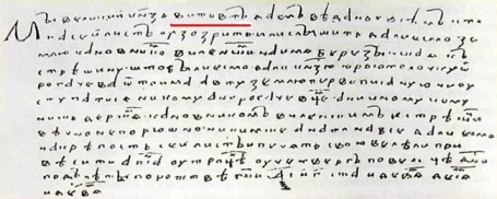 «Равно другаго св›щания, бывшаго при т›хъже цесарихъ Лва и Александра. Мы от рода рускаго — Карлы, Инегелдъ, Фарлофъ, Веремудъ, Рулавъ, Гуды, Руалдъ, Карнъ, Фрелавъ, Рюаръ, Актеву, Труанъ, Лидуль, Фостъ, Стемиръ, иже послани от Олга, великаго князя рускаго…»