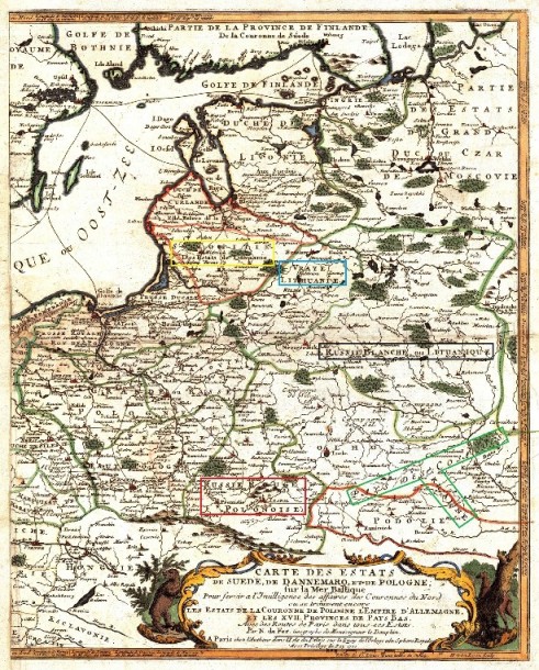 Жёлтым: Samogitie Des Estats de Lithuanie — Жемайтия, госуд?рства (или земли, или штаты, как в США) Литвы.