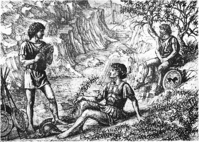 У стены, воздвигнутой в Фермопильском ущелье, лазутчик увидел немногих воинов. Сложив копья и мечи у стены, они беззаботно упражнялись в прыжках и метании камней. Некоторые просто грелись на солнце. Другие же мыли головы и, тщательно расчесав волосы, украшали их венками. Как будто они были не на войне, будто не видели, что совсем рядом расположилось огромное азиатское войско.