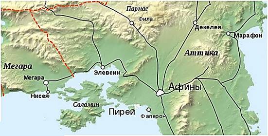 Географические названия, связанные с Писистратом: Афины, Элевсин, Нисея, Саламин, Марафон