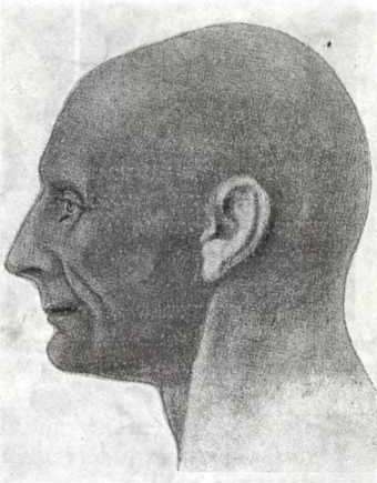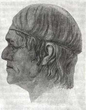 Рис. 192. Голова чоловіка з поховання 2 в кургані 5 катакомбної культури біля с. Новопилипівка. Реконструкція М. М. Герасимова