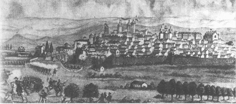 Португальские войска в Эворе находились под командованием 60-летнего генерал-майора Франсишку да Паула Лейте и включали в себя не просто толпу ополченцев и крестьян (хотя и их под Эворой было предостаточно), а несколько частей регулярной армии, в частности, 3-й португальский пехотный полк (848 чел.), португальскую кавалерию (120 чел.), 3-й португальский артиллерийский полк и т.д. И эти регулярные войска находились не в чистом поле, где преимущество хорошо обученных французов было очевидным, а были надежно укрыты за стенами Эворской крепости, казавшейся неприступной. К слову сказать, в XVII в. эта крепость была реконструирована и укреплена французским инженером Аленом Малле.