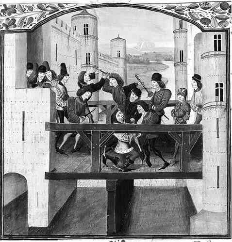Убийство Жана Бесстрашого на мосту в Монтро. Миниатюра XV века