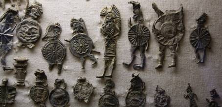 Интересно, что фигурки воинов прикрыты щитами вне зависимости от того, идут ли они налево или направо. Специальной статистики при подсчете вариантов не велось, но в музейной экспозиции большинство воинов держит щит в левой руке. Это наводит на мысль, что левши, держащие щит в правой руке, изображались вполне сознательно. А это значит, что каждая фигурка была посвящена конкретному человеку.