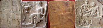 В коллекции Музея Спарты имеются и более ранние рельефы, представляющие легендарные сюжеты. В частности, на пьедестале не сохранившейся скульптуры угадывается сюжет убийства Клитемнестры ее сыном Орестом. (В экспозиции поясняющая подпись ошибочно предполагает, что данный сюжет – встреча Одиссея с Пенелопой или Париса с Еленой). Данная история для древних греков была ключевой: она утверждала определенные стандарты семейных отношений: верность Пенелопы противопоставлена коварству Клитемнестры. Орест был оправдан и ритуально очищен от преступления, поскольку Клитемнестра организовала заговор и убийство своего мужа царя Агамемнона. В "Одиссее" Гомер многократно обращается к этой истории. Что перед нами сюжет именно убийства Клитемнестры доказывается наличием в руках мужчины в шлеме оружия, направленного в сторону женщины. Рельеф датируется 6 в. до н.э.