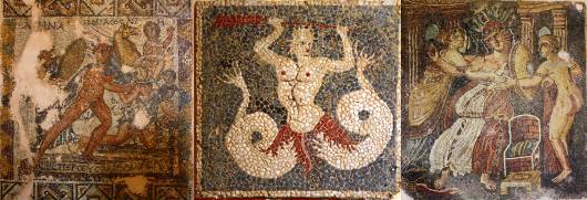 В Музее Спарты выставлены мозаики III-IV вв., представляющие классические сюжеты древнегреческих преданий: Персей убивает Медузу, смотря на ее изображение в полированном щите; древнейший правитель Афин Эрихтоний, по преданию родившийся со змеиными телами вместо ног; разоблачение Ахилла на о. Скирос, где он был спрятан отцом среди женщин, чтобы уберечь его от Троянской войны, но не смог избавится от соблазна рассмотреть оружие, привезенное торговцами.