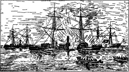 Похоже, янки сполна обладали этими качествами: баркасу удалось подобраться почти к самому борту боевого корабля, когда их заметил часовой и поднял тревогу. Яростный артиллерийский огонь оказался бесполезным, поскольку диверсанты были в мертвой зоне, но ружейные пули стали быстро выкашивать смельчаков. Броненосец был прикрыт бонами из бревен, поэтому баркас находился под градом пуль несколько минут, пока бревна не перерубили. Жертвы оказались не напрасны: мина взорвалась в середине корабля, и он затонул в течение часа. Огромный водяной столб накрыл и самих нападавших, выведя из строя их средство передвижения. Только двое северян сумели доплыть до берега и с огромными трудностями выйти к своим, остальные погибли или попали в плен.