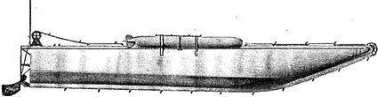 Ее сделали из меди, корпус был выполнен в виде двух соединенных болтами половинок, напоминающих панцирь черепахи. Соответственно с этим она и получила название «Черепаха». В нижней части находились балластные цистерны, заполняя которые, командир лодки, совмещавший в одном лице весь экипаж, мог заставить свой корабль погрузиться под воду. Правда, под водой «Черепаха» могла находиться всего тридцать минут. Кроме этих цистерн в распоряжении командира был еще вертикальный винт; вращая его с помощью рукоятки, можно было после балансировки погружаться и всплывать. Для горизонтального передвижения был второй винт, также вращаемый вручную. В верхней части лодки, там, где у настоящей черепахи голова, в корпус была вмонтирована невысокая медная башенка с герметичным входным люком и иллюминаторами, через которые командир мог вести наблюдение. Через крышу башенки были пропущены две снабженные клапанами и связанные с вентиляторами трубки для освежения воздуха. Оружие «Черепахи» — мина, начиненная 45 кг пороха и снабженная часовым механизмом, — находилось снаружи. При атаке мина крепилась к деревянному днищу корабля-цели при помощи бурава, напоминающего огромный штопор.