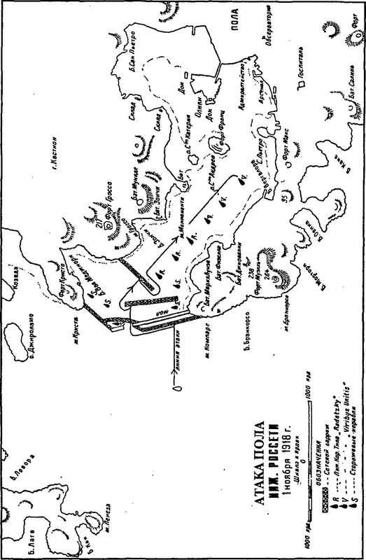 Аппараты были готовы в марте 1918 года, и уже 14 апреля два из них вышли на операцию к главной базе австрийского флота — порту Пола, но из-за необычно темной ночи заблудились и не смогли найти проход в гавань. Когда же рассвело, то корабли-буксиры, приняв на борт экипажи, затопили оба катера, так как ни под каким видом нельзя было рисковать элементом неожиданности, ценными были объекты атаки — австрийские дредноуты. Четыре линкора типа «Вирибус Унитис» были введены в строй в самом начале Первой мировой войны. Эти 22000- тонные красавцы, вооруженные двенадцатью 305-мм орудиями главного калибра, имели отличную броню и скорость более 20 узлов. Специалисты отмечали прекрасную сбалансированность всех элементов кораблей и их идеальную приспособленность к условиям Адриатического моря. Имея такого противника, итальянское командование не могло расслабиться ни на минуту, ибо их дредноуты по всем параметрам (кроме скорости) уступали австрийцам.