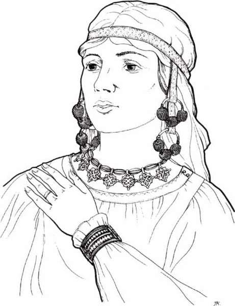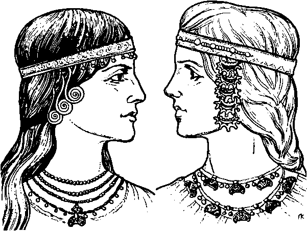 Жіночі прикраси полян. Малюнок П. Корнієнка
