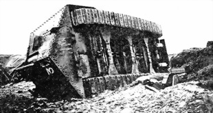 Танк A7V № 542 «Эльфриде» опрокинувшийся при переходе через воронку и ставший трофеем британцев.