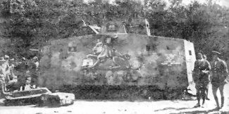 Танк A7V № 506 «Мефисто» — трофей австралийской пехоты. На борту трофейной машины нарисовали «имперского» британского льва, наложившего лапу на германский танк, и обозначили дату, когда он был выведен из строя.
