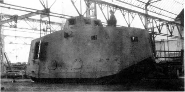 Собранный танк A7V № 501 с корпусом «Рёхлинг» первого заказа на заводе «Стеффенс унд Нолле», еще без вооружения. Конец ноября — начало декабря 1917 г.