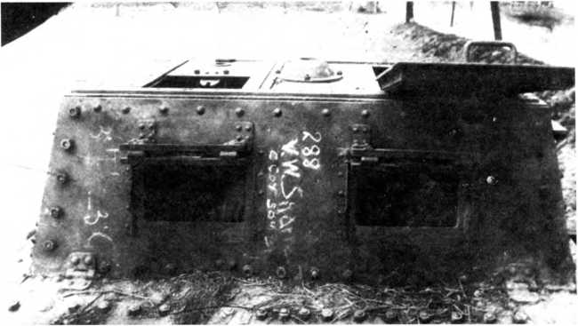 Рубка управления танка A7V № 504 с откинутыми передним и задним листами. Хорошо видны щитки смотровых лючков и способ сборки рубки.