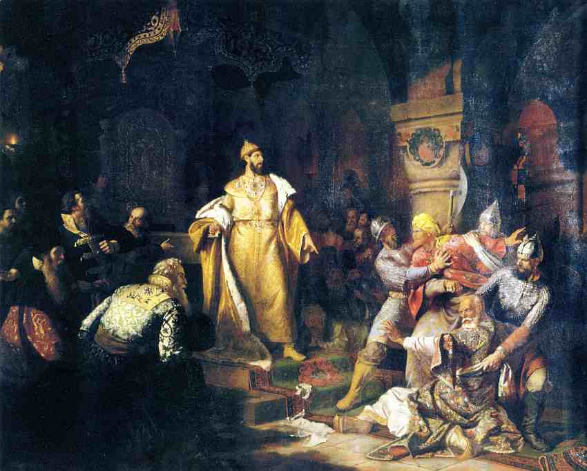 Иван Васильевич, конечно, не поехал. Тогда хан умерил несколько свои требования и послал сказать: — Сам не хочешь ехать, так сына или брата пришли!