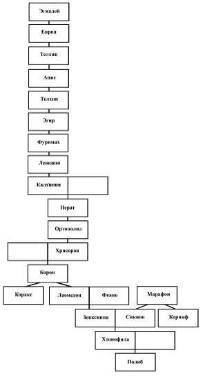 Павсаний свидетельствует, что сикионцы считали основателем города Эгиалея, и по его имени называлась часть Пелопоннеса и город. От основателя выстраивается цепочка наследования власти: Эгиалей-Европ-Телхин-Апис. Могущество Аписа простиралось до Истма и, видимо, составляло серьезную конкуренцию царям Микен и Аргоса. Далее следует цепочка царственных правлений, переданных от отца к сыну, но в нее вкрапляются также и передачи власти по женской линии: Апис-Телхин-Эгир-Фуримах-Лавкипп-Перат (сын дочери Левкиппа Калхинии)-Ортополид-Корон (сын дочери Ортополида Хрисорои)-Корас ("Ворон"). (В данном случае мы полагаем, что Телехин и Телксин – одно и то же имя, по-разному написанное). После смерти Коракса, пользуясь отсутствием у него наследника, власть захватил Эпопей, прибывший из Фессалии.