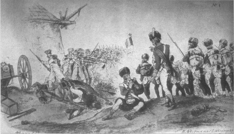 «Вторая атака, однако, потерпела неудачу даже более чувствительную, чем первая: гренадеры, атаковавшие на узком фронте и в единственном пункте, были сметены перекрестным огнем 52-го и 97-го полков, двух стрелковых батальонов Фейна и батареи, расположенной на холме. Батальоны Сен-Клера дошли только до середины холма, большего они сделать не смогли». (36)
