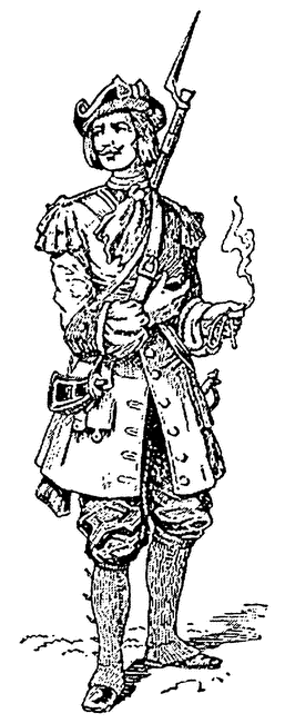 Однако после этого в течение 13 лет из метрополии в Канаду не присылали никаких подкреплений. Лишь с 1683 г. туда стали направляться так называемые отдельные роты морского министерства («franches companies de la Marine»). Эти войска иногда называют «морской пехотой», что не совсем верно, так как они состояли не из военных моряков, а из солдат, не имевших никакого отношения к флоту. Отличие «отдельных рот» от обычных сухопутных частей французской армии состояло только в том, что они находились в ведении морского министерства и использовались главным образом в колониях (рис. 2).