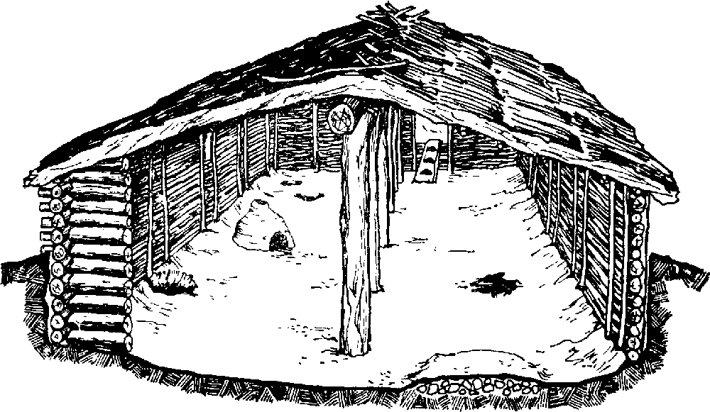 Жилище из поселения Пустынна вблизи с. Мнев Черниговской области. XII–XI вв. до н. э. Реконструкция С. С. Березанской