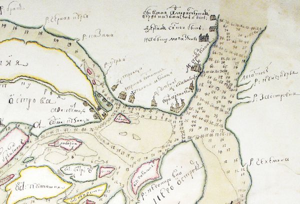 Архангельск в начале XVIII в. фрагмент карты. 1771 г. Из фондов РГАДА.