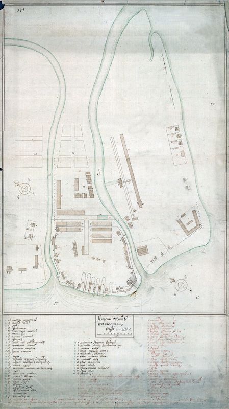 Генеральный план Соломбальской верфи Архангельского адмиралтейства. 1741 г. Из фондов РГВВМФ.