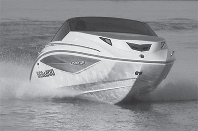 Причем обычно на катер ставят два водомета. Во-первых, для надежности – если выйдет из строя один, до берега можно добраться на другом. Во-вторых, такая конструкция позволяет легко маневрировать – если, скажем, в левый водомет гнать воду, как обычно, от носа к корме, а в правом повернуть струю наоборот, то катер развернется, что называется, «на пятке».