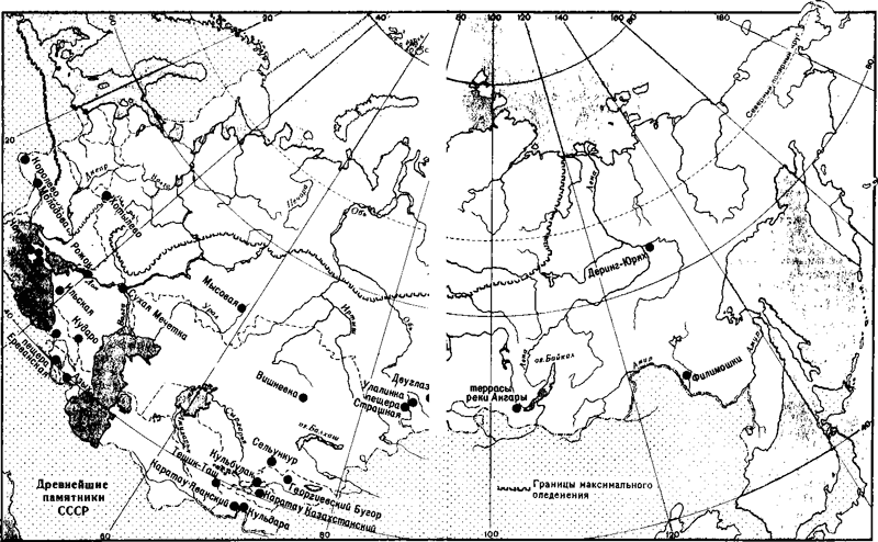 На сегодняшний день мы можем уже с достаточной степенью уверенности сказать, что в промежутке 1 млн.— 730 тыс. лет древний человек появляется на территории СССР. Это примерно то же время, что и у самых древних памятников Европы, Ближнего Востока и Китая.