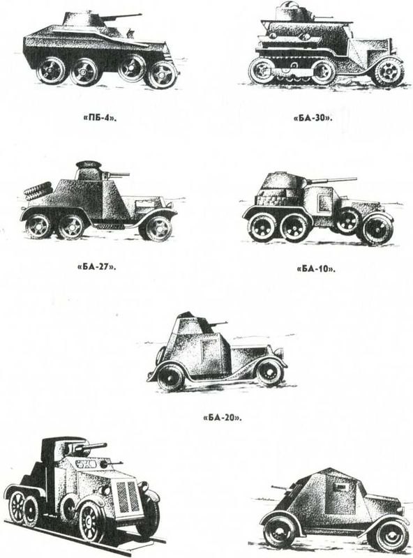 С выпуском автомобилей «М-1» и «ГАЗ-ААА» создаются бронемашины «БА-10», «БА-20» и «БА-бжд». Последний мог передвигаться по шоссейным дорогам и по железнодорожным рельсам. В то же время был создан и плавающий бронеавтомобиль «ПБ-4». Небольшой серией выпускался полугусеничный «БА-30».
