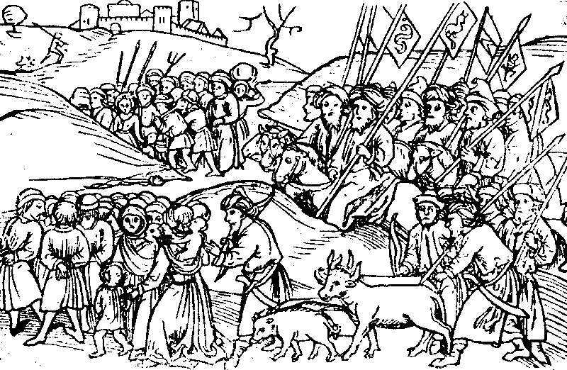 Крымчаки гонят пленных, захваченных в Юго-Западной Руси. Миниатюра из венгерской хроники. 1488 г.