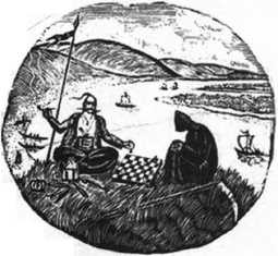 Характерник бежит из тюрьмы, нарисовав лодку на стене. Рисунок М. Бутовича.