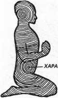«Ха» — это энергия дыхания. В восточных методиках по сей день существует божественное дыхание «ха» от живота. У буддистов огонь внутренней энергии, Божий Дух Вселенной, называется «дхарма». У буддистов-палов существует понятие «дхамма», что обозначает дыхание, дух в сакральном значении (155, 123). У зороастрийцев «Хаа» — это одно из имен Бога, руководящего силами. У кришнаитов «Харе» — Божья энергия. Основная чакра у индийских йогов называется «мулад-хара», что обозначает — «сила земли». Именно в муладхаре пробуждается мистическая змея Кундалини, которая символизирует психическую энергию человека, что поднимается именно из этой чакры, вследствие чего человек просветляется. А значение «ра» — энергия Солнца — подобно «ци» в китайских дыхательных методиках. То есть «ха-ра» знаменует жизненную силу человека. Исследователи индийских йогов утверждают, что постижения ими тайн природы и достижение многих возможностей, недоступных обыкновенному человеку, произошло вследствие внимательного наблюдения за поведением диких животных: в частности, впадение их в спячку (состояние анабиоза) позволило йогам научиться достигать состояния «самадхи», когда йог, пребывая в состоянии оцепенения, может длительное время находиться без воздуха, еды и воды. По моему мнению, такие феномены могли быть нужны древним арийцам еще в период их пребывания на своей прадавней родине, в Украине, в условиях сурового климата, где и теперь много зверей (медведи, барсуки, ежи), именно входя в состояние анабиоза, переносят суровые зимние месяцы. Не случайно на Запорожской Сечи сохранилось старинное название барсука — «харсун», которое перекликается как с понятием Хари у индийских йогов, так и с понятием казацкого характерництва. Ведь харсуна можно было легко приручить, чтобы наблюдать за его спячкой на протяжении зимы в домашних условиях. Следы хары угадываются и в древней украинской легенде о том, «почему человек харкает», которую записал М.Драгоманов. В ней рассказывается, как Бог вылепил человека из глины и поставил сушиться, приказав собаке стеречь его, а черт воспользовавшись тем, что собака заснула, разорвал человеку грудь и наплевал в нее. Бог затем вдохнул в человека душу, но человек до сих пор кашляя, харкает (50, 178).
