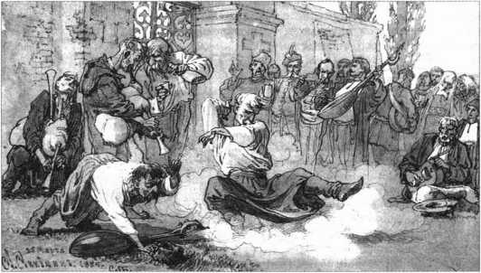 Одним из тайных казацких обществ на Сечи был институт характерников, о котором я рассказал в предыдущей книге «Тайны боевых искусств Украины». Здесь, учитывая вновь обнаруженные данные, я хотел бы более глубже остановиться на некоторых аспектах характерництва. Как мы уже знаем, характерники в народном сознании наделялись уникальными способностями, они могли передвигаться по воде, по воздуху, проходить сквозь стены, их нельзя было уничтожить обыкновенным оружием: «Не быстро как-то поймали Голуба, а когда поймали его, то все тело, руки, ноги, даже шею заковали в железо; раскаленными клещами рвали его тело, а ему все равно — курил себе трубку да и пел какую-то вражескую песню, хоть бы что! — конечно характерник: тут разрывают его тело клещами, а оно сразу срастается и след не остается, как кто нибудь кувшином зачерпнул воду в пруду. И следа нет этого мучения! Несколько раз бежал он из тюрьмы: вот встряхнул кандалы, так на нем вроде из глины цепи разлетаются на мелкие кусочки. Наконец взял из кармана мел, нарисовал на стене лодку, сел в нее и — вспоминай как звали, а сторож только раззявит рот: Голуба вроде как и никогда не было в тюрьме» (317, 37). Выходец из казацкого рода, известный украинский писатель Евгений Гребинка в романе «Чайковский», написанном на основании семейных пересказов, описывает характерництво, как владение древними рыцарскими традициями: «Характерник был человек очень умный и знал всякую всячину, его и пуля не брала, и сабля не рубала; у него на все было средство и способ, на все доброе слово и польза. Характерники знали все броды, все заплавы на Днепре и других речках; характерник из воды выводил сухого и из огня мокрого; у них была рыцарская совесть и добросердечие…» (81, 121). Именно поэтому характерников всегда выбирали вожаками казацких и гайдамацких отрядов. «Вот соберется их вместе несколько десятков или сотен, выберут себе вожака, эдакого характерника, что уже его только серебряная пуля возьмет, — и казаки за ним и в огонь, и в воду» (284, 2–3).