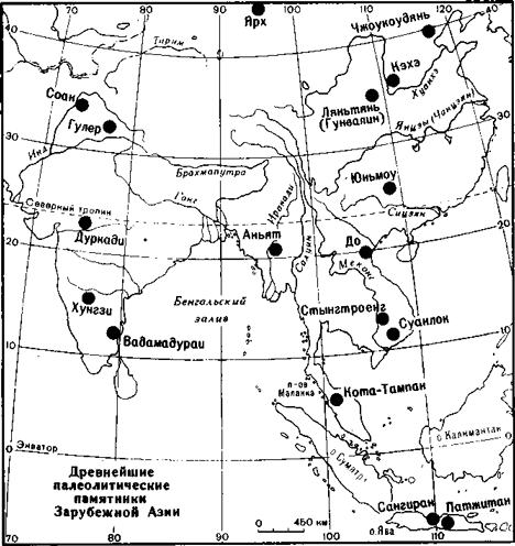 Подводя итоги, можно сказать, что настоящие, бесспорные раннепалеолитические находки на Яве и в Индокитае, которые должны показать подлинный облик древнейшей юго-восточной культуры, еще впереди. Возможно, сыграли свою роль неблагоприятные условия сохранения четвертичных отложений, и в том числе древних стоянок. Все найденное в лучшем случае находится в переотложенном состоянии. Поэтому проблему прародины человека теперь не связывают с Юго-Восточной Азией, как это было лет тридцать назад.