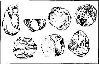 Каменные орудия из Гунвалиня. Их возраст 700 тыс. лет. Можно отметить грубость и примитивность их обработки.
