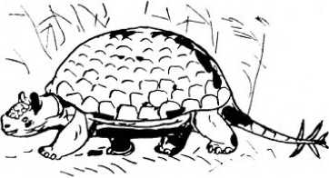 Когти на пальцах армадилла приспособлены для копания в земле. Короткие же круглые лапы глиптодонта вооружены были тупыми, копытоподобными когтями. Глиптодонт с виду казался гигантской сухопутной черепахой; в длину он нередко достигал пяти метров.