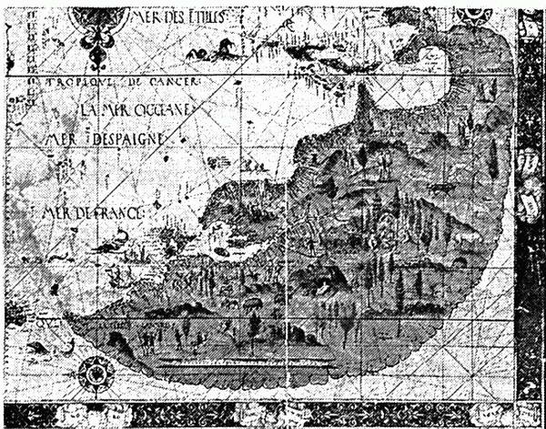 В свою очередь, французские авторы также стремились доказать, что честь открытия Североамериканского континента (и особенно его северной части, включая Ньюфаундленд и прилегающую к нему Большую банку) принадлежит их соотечественникам. При этом они также часто смешивали достоверные факты и сомнительные предположения. Первый хронист Новой Франции М. Лекабро в своей очень обстоятельной и в целом объективной работе, впервые увидевшей свет в 1609 г., утверждал, что «название Ньюфаундленд не ново, поскольку, по воспоминаниям многих людей, жители Сен-Мало, Ля-Рошели, Гавра, Онфлёра и других приморских городов в течение вот уже нескольких веков совершали путешествия в этот район для ловли трески».[325] П. Бержерон в 1630 г. так говорил об Атлантическом побережье Североамериканского континента: «Нормандцы и бретонцы первыми нашли эти земли, и с самых давних пор они торговали с дикарями».[326] В выпущенной в середине XVII в. книге Э. де Клейрака утверждалось, что острова Ньюфаундленд и Кейп-Бретон были открыты гасконцами еще за сто лет до плавания Колумба, т.е. где-то в конце XIV в.[327]