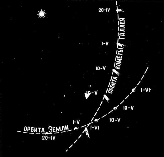 Путь кометы Галлея в 1910 году, когда состоялась ее встреча с Землей.