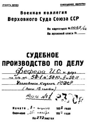 Следователь МГБ по особо важным делам Кузьмин взял на себя составление этого документа1, Рюмин утвердил его. В нем говорится, что против С. Лозовского, И. Фефера, С. Брегмана, И. Юзефовича, Б. Шимелиовича, Л. Квитко, П. Маркиша, Д. Бергельсона, Д. Гоф-штейна, В.Зускина, Л. Штерн, Л.Тальми, И. Ватенберга, Э.Теумин и Ч. Ватенберг-Островской выдвинуто обвинение в совершении преступлений, предусмотренных ст. 58—1а, 58–10, часть 2, и 58–11 УК РСФСР. Эти статьи уголовного кодекса касались «попытки свержения, подрыва или ослабления Советской власти», агитации и пропаганды, а также организованной деятельности с этой целью. Возможным следствием всех названных «контрреволюционных преступлений» была смертная казнь.