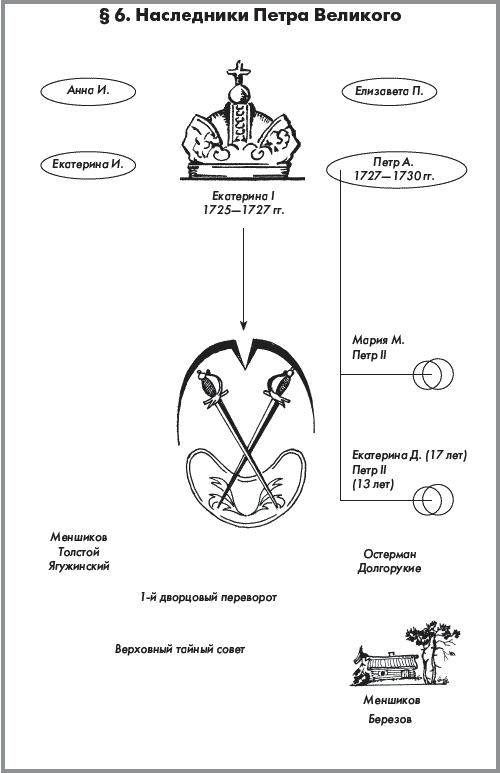 2. Почему до XVIII в. не было ни единого случая узаконивания женщины на троне, а за 1725–1730 гг. – сразу два примера? (О второй женщине-императрице вы узнаете из следующего параграфа.)