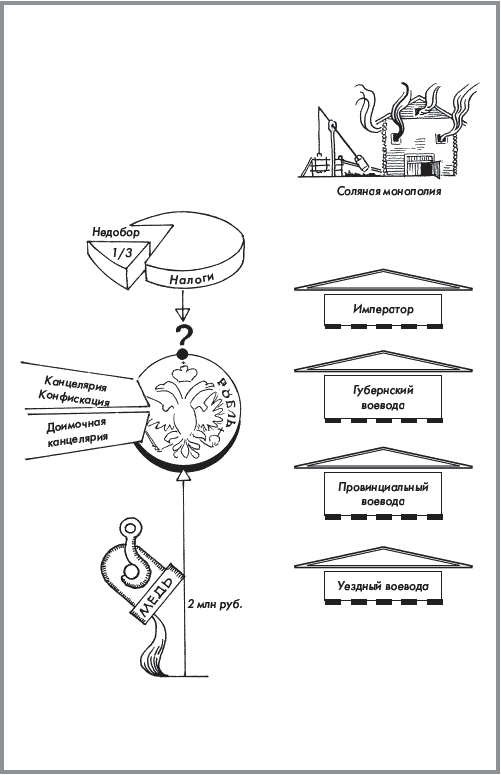 Постигший многие районы неурожай 1726 г. привел к тому, что в первый же после кончины Петра I сбор подушного налога дал только 30% от всей намечаемой суммы. На другой год, несмотря на понижение подушного оклада, недобор налогов вновь составил одну треть. Тогда создали Канцелярию конфискации – учреждение по отбору в казну имущества попавших в опалу лиц, а также Доимочную канцелярию – для выбивания недоплаченных налогов с крестьян. Сбор подушной подати вновь был передан в руки армии, затем эта функция перешла к помещикам, а еще через три года – к отставным офицерам на местах.