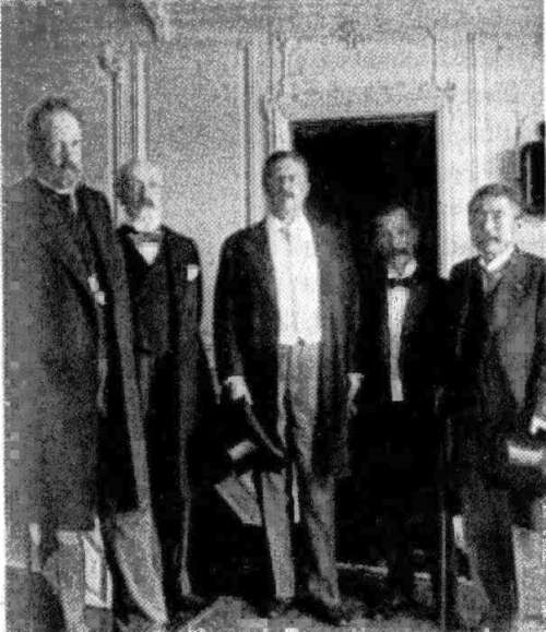 Рис. 12. Посланники императора Коджона на Второй Международной мирной конференции в Гааге — Ли Сансоль, Ли Джун и Ли Виджон. Фото из бюллетеня конференции от 5 июля 1907 г.