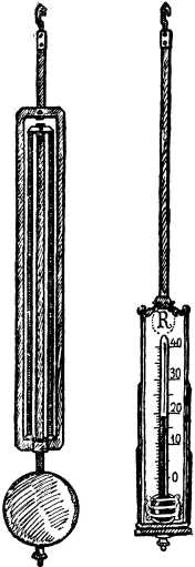 Чтобы ослабить вредное влияние температурных колебаний, маятники стали делать составными или укреплять в них обыкновенный термометр. В некоторых домах сохранились еще старинные часы с термометром. От повышения температуры маятник удлиняется и его центр тяжести опускается. У термометра же, наоборот, ртуть в трубочке от нагревания ползет вверх и центр тяжести поднимается. У маятника, спаренного с термометром, общий центр тяжести остается почти неизменным и вредное влияние изменений температуры парализуется.