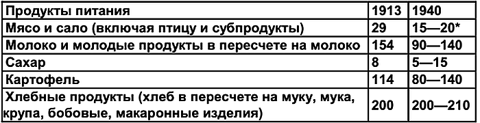 В СССР накануне коллективизации на 150–155 млн. человек населения ежегодно производилось 72–73 млн. т зерна, более 5 млн. т мяса, свыше 30 млн. т мол ежа, а в конце 30-х — начале 40-х годов на 170–200 млн. населения — 75–80 млн. т зерна, 4–5 млн. т мяса и 30 млн. т молока. Производили эту продукцию в конце нэпа 50–55 млн. крестьян-единоличников, в предвоенные годы 30–35 млн. колхозников и рабочих совхозов.