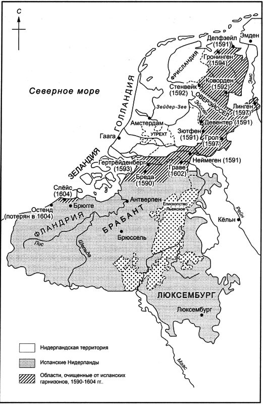 К концу 1580-х гг. Республика напоминала туго сжатую пружину со сдерживаемым импульсом. После потери Зютфена и Девентера буквально вся восточная часть севера Нидерландов от Неймегена до устья реки Эмс снова была под властью испанцев. Войска Генеральных штатов отступили на запад к реке Эйссел. В течение 1589 г. испанцы захватили Гертрёйденберг и Райнберг и осаждали Хёсден, вынуждая нидерландские войска отступать вдоль рек на юг. Но на этой неспокойной территории, осаждаемой с юга, востока и северо-востока испанской армией, продолжалось реструктурирование учреждений, военных организаций и экономики, что, как покажут последующие события, неизмеримо увеличило шансы на выживание мятежного государства{819}.