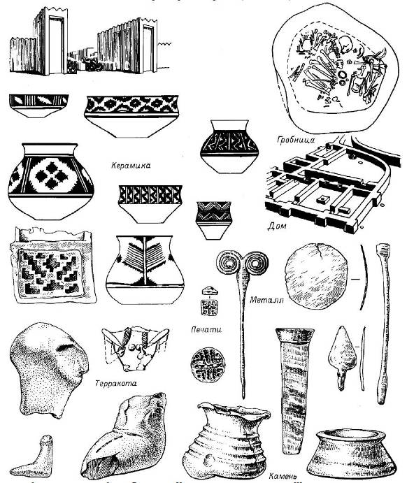 Характерной чертой позднеэнеолитической эпохи было резкое усиление культурных воздействий племен юго-запада Средней Азии на оседлоземле-дельческие комплексы Среднего Востока и Индостана. Так, целый ряд типично южнотуркменистанских элементов как в расписной керамике, так и в мелкой пластике может быть прослежен в материалах северобелуджистанского комплекса Кветта (Массон, 1964а, с. 437).