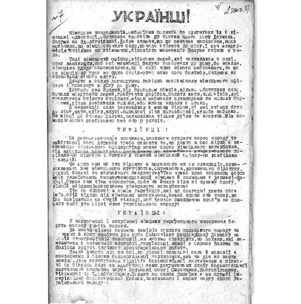 Погроза з цього заклику повстанської листівки справді була дуже швидко реалізована, і саме на літо 1943 р. припадає пік антипольських акцій на Волині. Причому, судячи з того що звітів за липень?серпень 1943 р. є відносно небагато, далі домінував стихійний елемент.